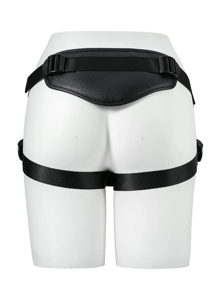 The bold black leather look adds an irresistible edge, while the secure ring system locks suction cup dildos firmly in place—so you can thrust hard and play without worry. Perfect for anyone seeking a realistic feel, rock-solid stability, and bold style in one versatile harness.